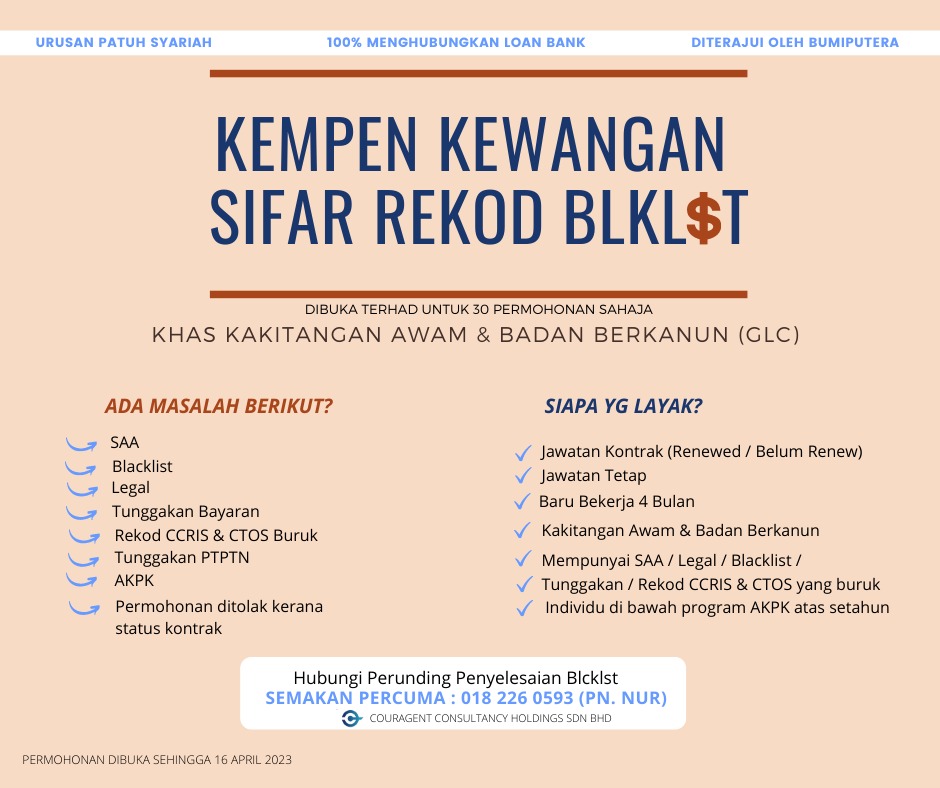 Professional platform for government/glc staff in managing personal financing whilst giving opportunity for people to have good portfolio of financial record by providing assistance in settlement of SAA & legal ccris records.